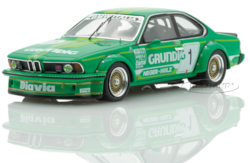 Mit dem EM-Titel 1979 hatte die Tourenwagen-Karriere des BMW 3.0 CSL einen krönenden Abschluss gefunden. Nun war die Homologation ausgelaufen und BMW suchte eine preiswerte Nachfolgelösung bevor ab 1982 die Gruppe A den Tourenwagen-Sport revolutionierte. Mit der Entwicklung und Homologation des BMW 635 CSi nach Gruppe 2 Reglement beauftragte BMW Motorsport Heribert Werginz, der in Wien zwei Rohkarossen mit seiner Racing Corporation Vienna aufbaute. Der RCV-Teamchef griff in der TW-EM 1980 selbst ins Lenkrad und holte sich mit dem niederösterreichischen Holzhändler Harald Neger gleich auch noch einen Sponsor ins Cockpit. Die Verpflichtung von Umberto Grano brachte zusätzliche Unterstützung von BMW-Italia und mit dem deutschen Video- und HiFi-Giganten Grundig brachte man einen ungewohnten Namen in den Motorsport. Vor dem siebten EM-Lauf auf dem Nürburgring standen drei Siegen drei Ausfälle gegenüber. Das neue Auto war schnell aber noch nicht standfest und so setzte auch die mörderische Nordschleife dem schweren Coupe zu: Ausfall mit defekter Hinterachse. In Silverstone gewann der grüne BMW noch einmal aber am Ende der Saison 1980 reichte es für den 635 CSi nicht zum erhofften Europameisterschafts-Titel. Das holte Umberto Grano ein Jahr später unter BMW-Eggenberger-Flagge nach. Das Fahrzeug von Heribert Werginz, Harald Neger und Umberto Grano in der Version vom Lauf der TW-EM auf dem Nürburgring 1980 gibt es ab sofort in der Raceland Gold Edition made by Spark.